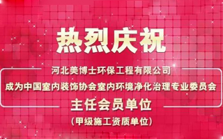 熱烈慶祝河北美博士環(huán)保工程有限公司成為中國室內(nèi)裝飾協(xié)會(huì)室內(nèi)環(huán)境凈化治理專業(yè)委員會(huì)主任會(huì)員單位。