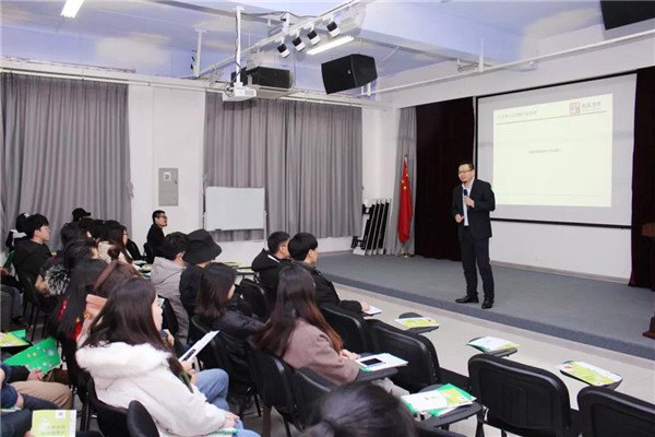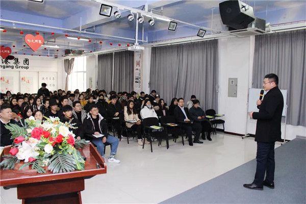 乾港集團美博士環(huán)保總經(jīng)理常凱???,為在座的師生們解讀了大綠色環(huán)保家居、室內(nèi)污染物治理技術(shù)、方式方法及產(chǎn)品介紹等相關(guān)空凈治理知識;秦皇島新型材料科技有限公司總經(jīng)理李勇劍李總則為在座師生帶來了綠色材料研發(fā)及生產(chǎn)使用工藝等內(nèi)墻環(huán)保壁材方面的知識。